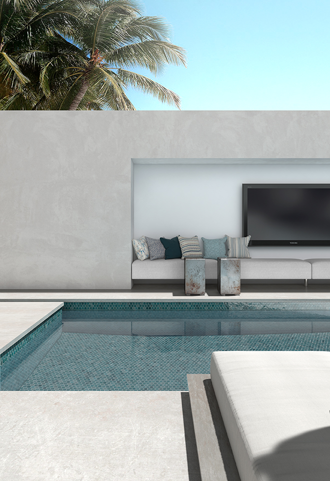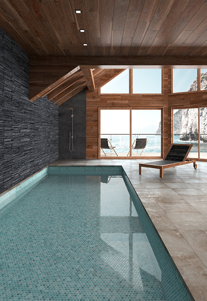 Posee una alta resistencia y durabilidad, convirtiéndolo en un revestimiento ideal para piscinas, baños, cocinas, zonas húmedas y exteriores.